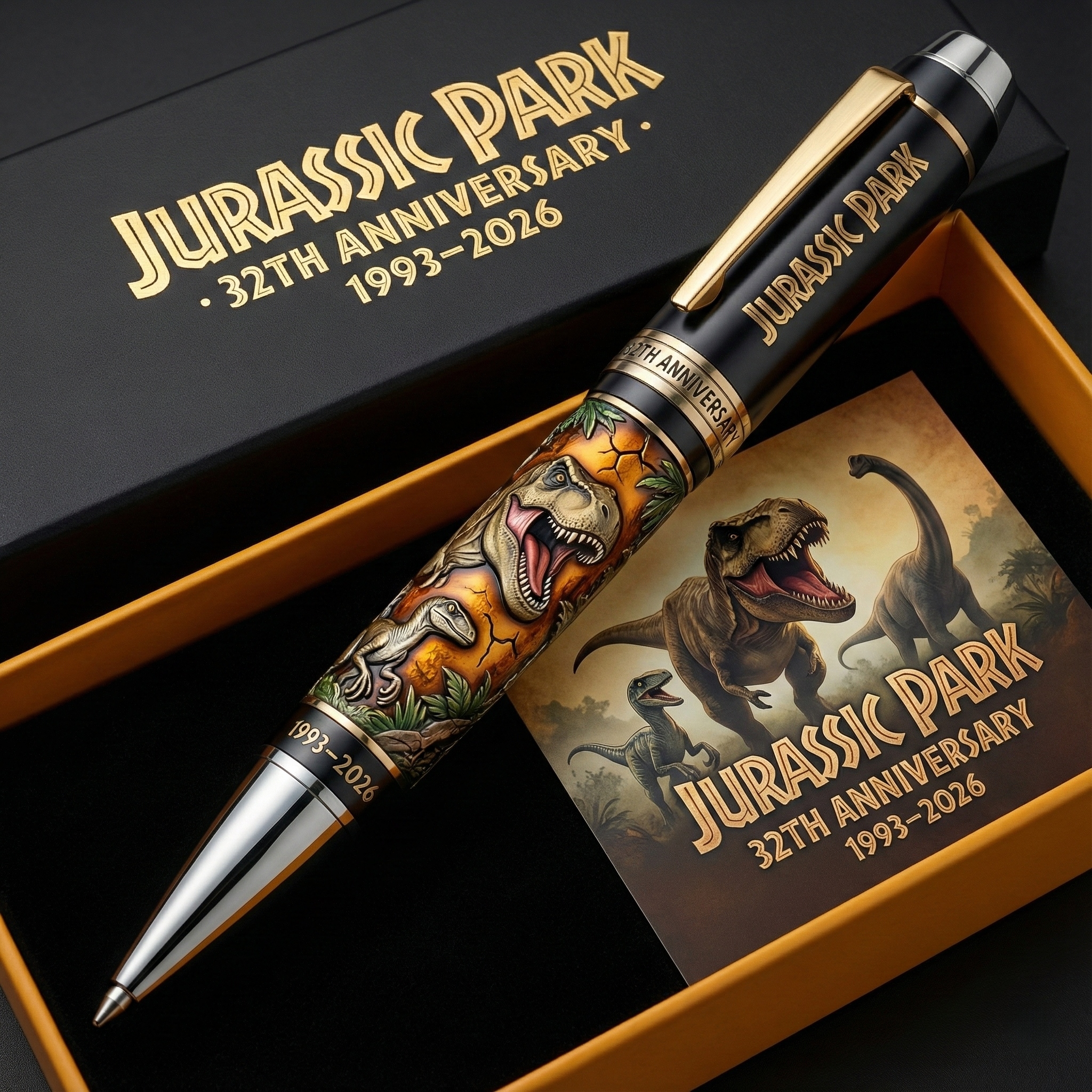 Crafted with a smooth metal body and presented in a matching anniversary gift box, this pen is perfect for collectors, movie fans, and anyone who believes some stories never go extinct.