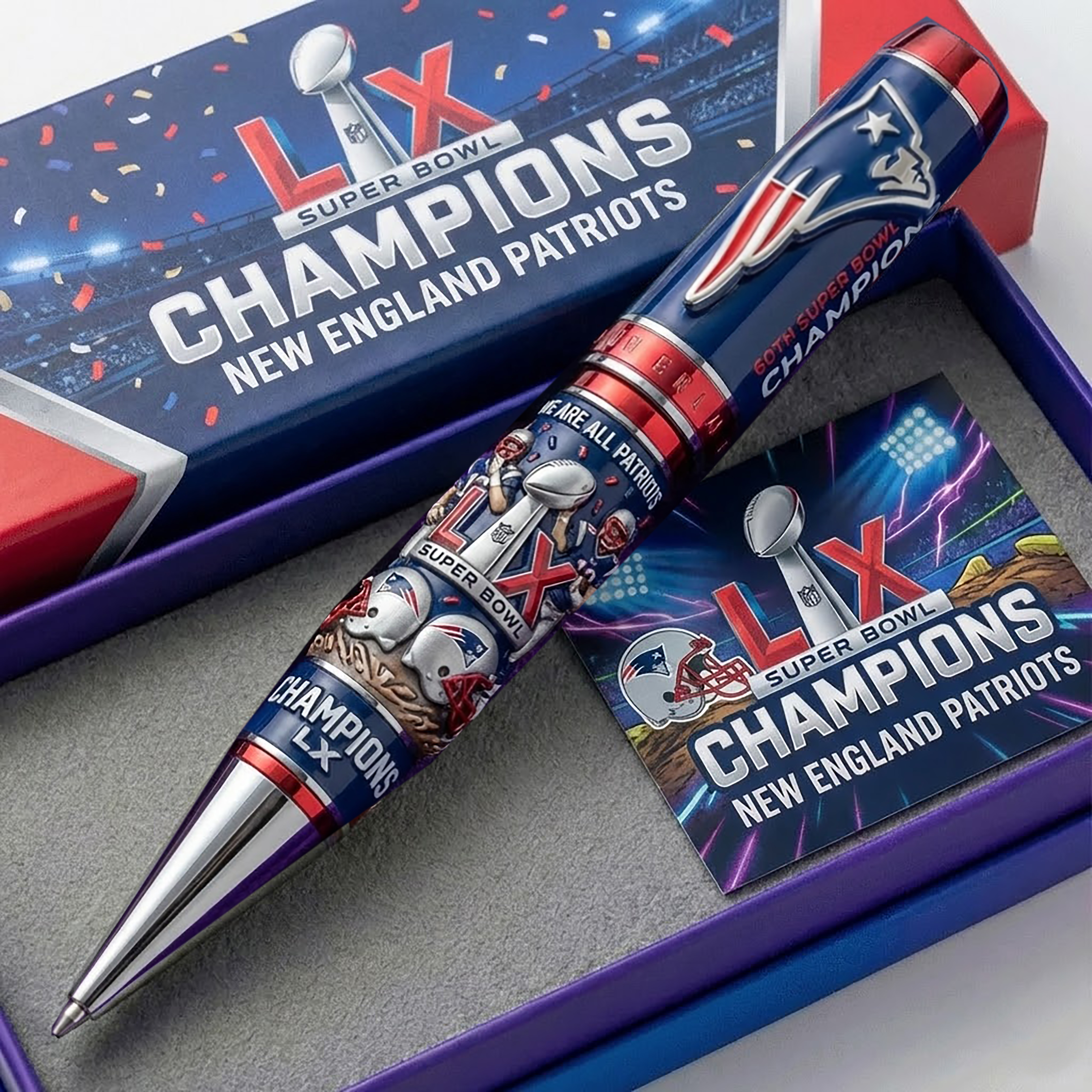 This Super Bowl LX Patriots pen transforms a championship moment into an everyday statement piece. Every detail celebrates a season that fans will never forget.