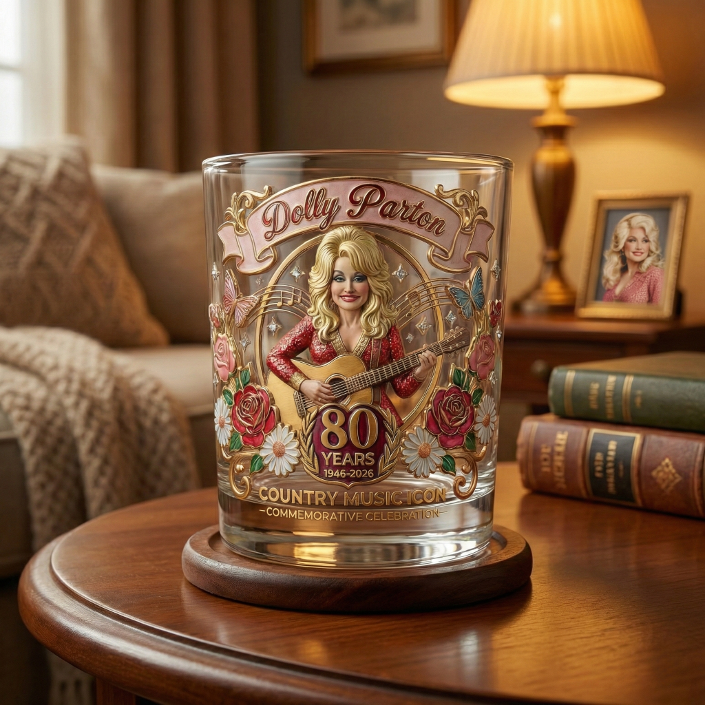 Created to celebrate Dolly Parton’s 80th Anniversary (1946–2026), this luxury whiskey glass is a heartfelt tribute to one of the most beloved icons in music history. Every detail reflects her warmth, talent, and timeless influence on country music and beyond.