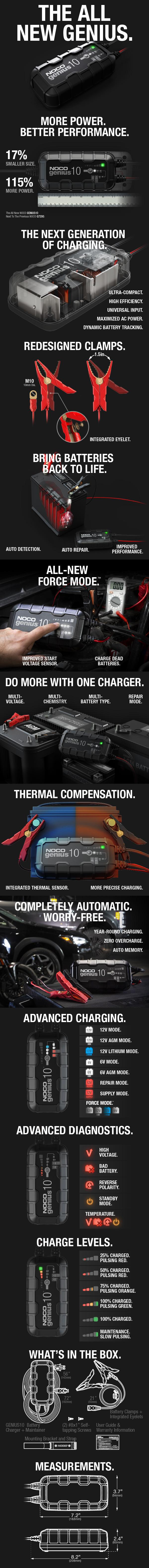 GENIUS10 10A Smart Battery Charger, 6V and 12V, Battery Maintainer, Trickle Charger and Desulfator