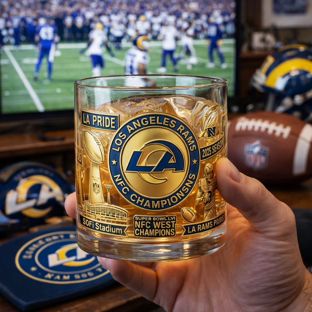 🏆 Celebrate the run. Own the moment. From SoFi Stadium to the NFC crown, this commemorative glass captures the pride, power, and passion of the Los Angeles Rams. Every detail honors a championship journey fans will never forget.