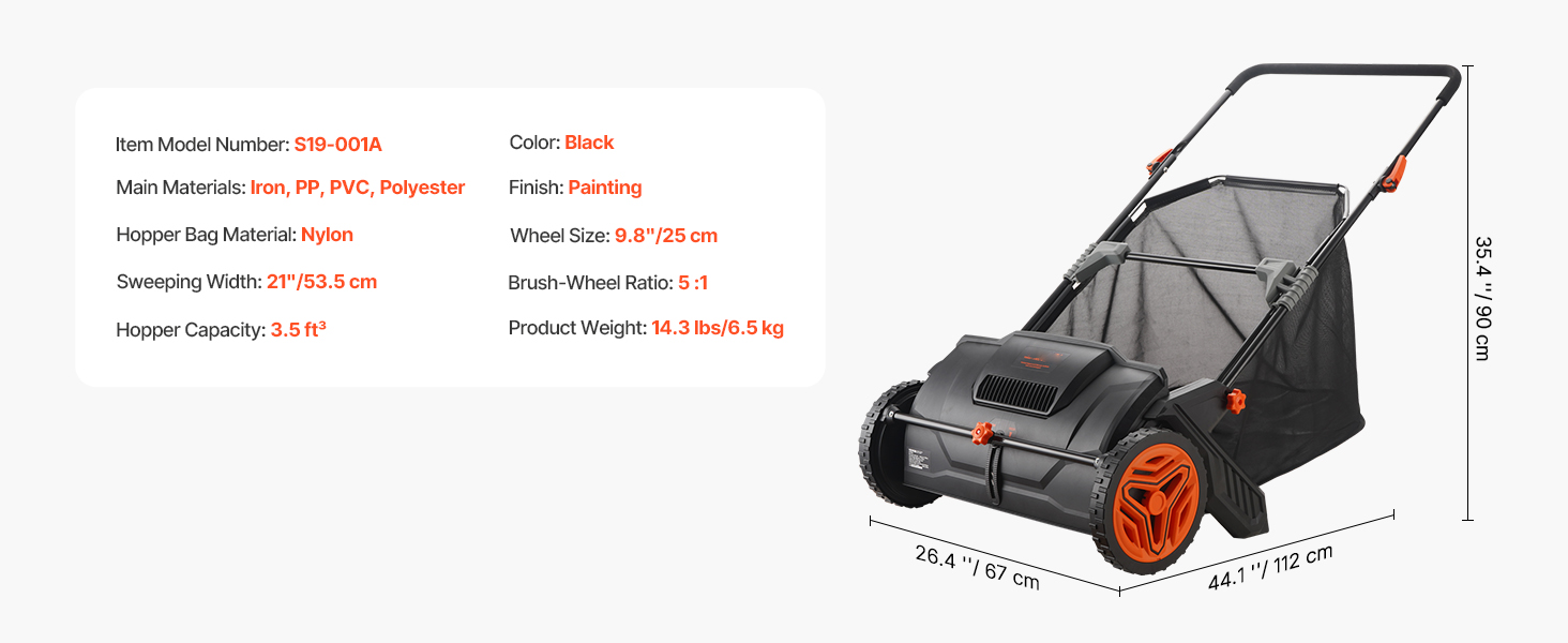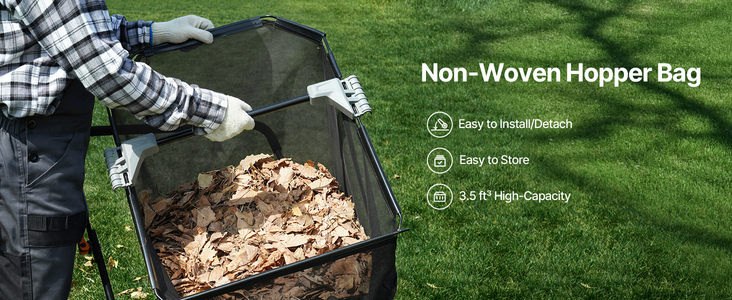With a large non-woven hopper bag, you can collect more grass, leaves, and debris at once without frequent dumping. The bag can be easily installed or removed from the yard sweeper.