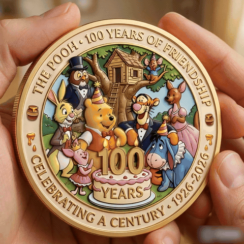 This 100th Anniversary commemorative coin celebrates Winnie the Pooh and the timeless world of friendship, kindness, and simple joy. Featuring beautifully detailed artwork on both sides, it brings the Hundred Acre Wood to life—just as generations remember it.